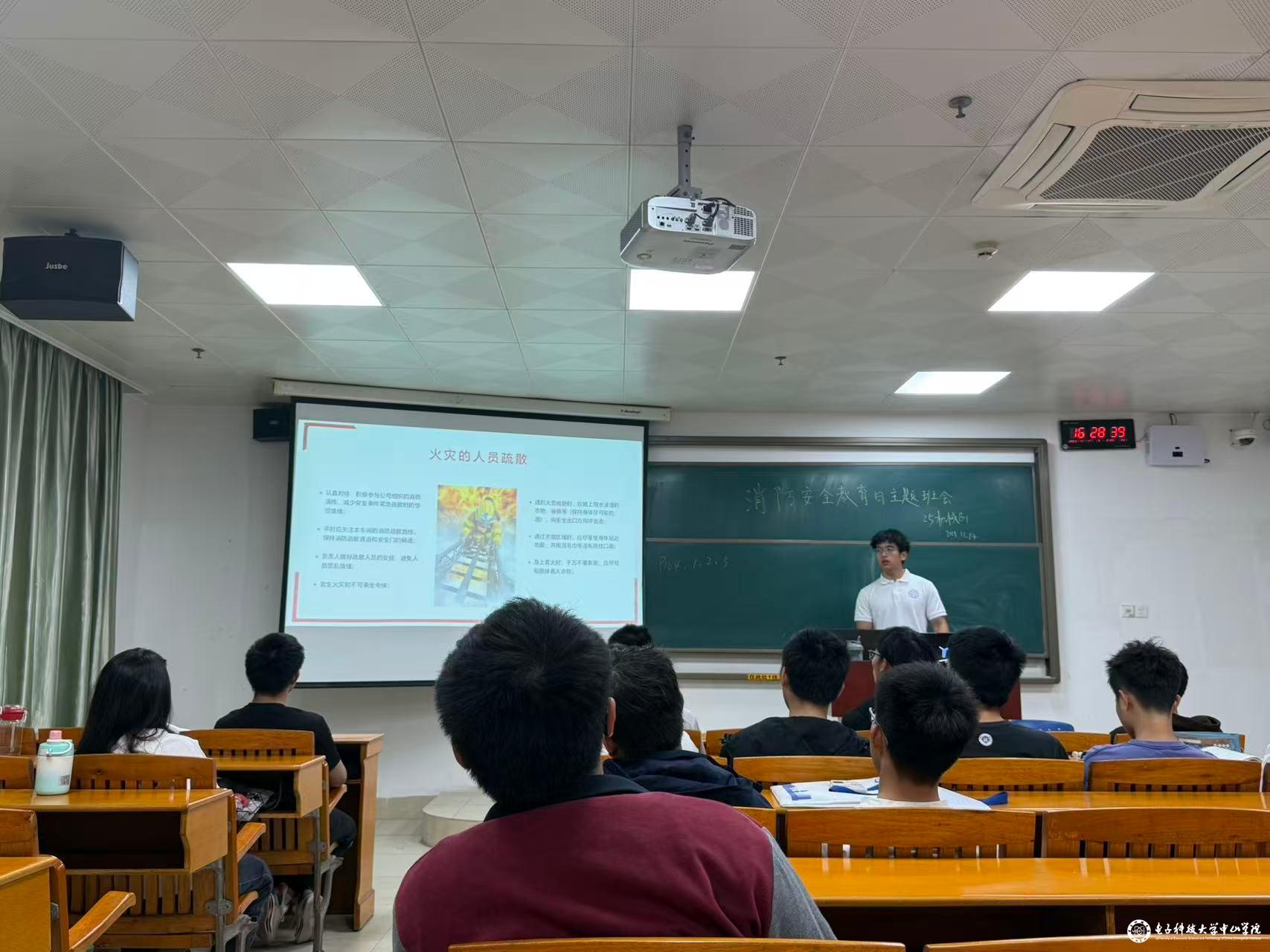 班会伊始,班长盖有强便紧扣主题,聚焦消防安全培训知识,为同学们详细讲解了火灾的主要特性、预防方法、应急处理方法以及消防器材的介绍和灭火器材的使用。他结合火灾的基本定义、种类和特性,介绍了火灾是指在时间和空间上失去控制的灾害现象。随后讲述火灾的预防办法,告知同学们阻止火势蔓延和隔绝空气的具体做法,这加深了同学们对火灾的理解,并了解了火灾正确的预防办法。