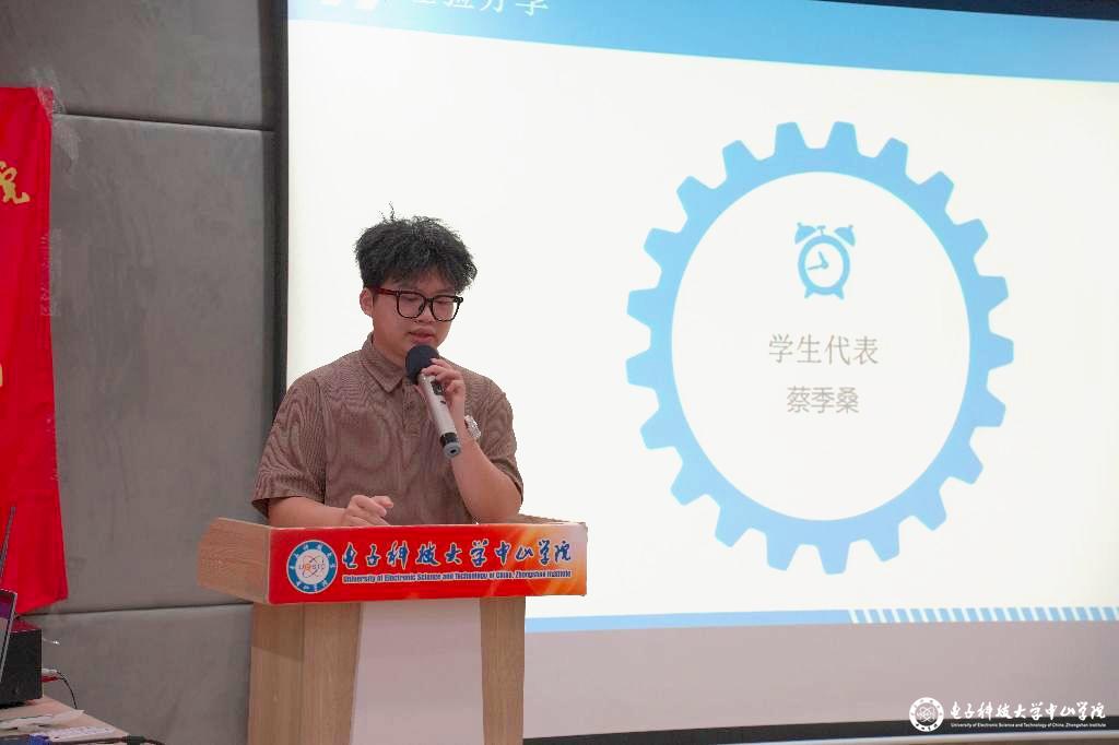 接着,22机械A班蔡季桑作为学生代表发言,他从“班委要做什么”“为什么要做”“工作意义”三方面展开分享。他提出班委需扮演“连接器”与“服务者”双重角色,结合自身经历,讲述如何完善通知传递、反映同学需求,以及通过组织考前班会、节日送祝福、关怀同学等方式凝聚班级力量。同时,他指出班委工作不仅能为集体搭建良好环境,更能提升个人沟通、策划等“软实力”,收获珍贵友谊。