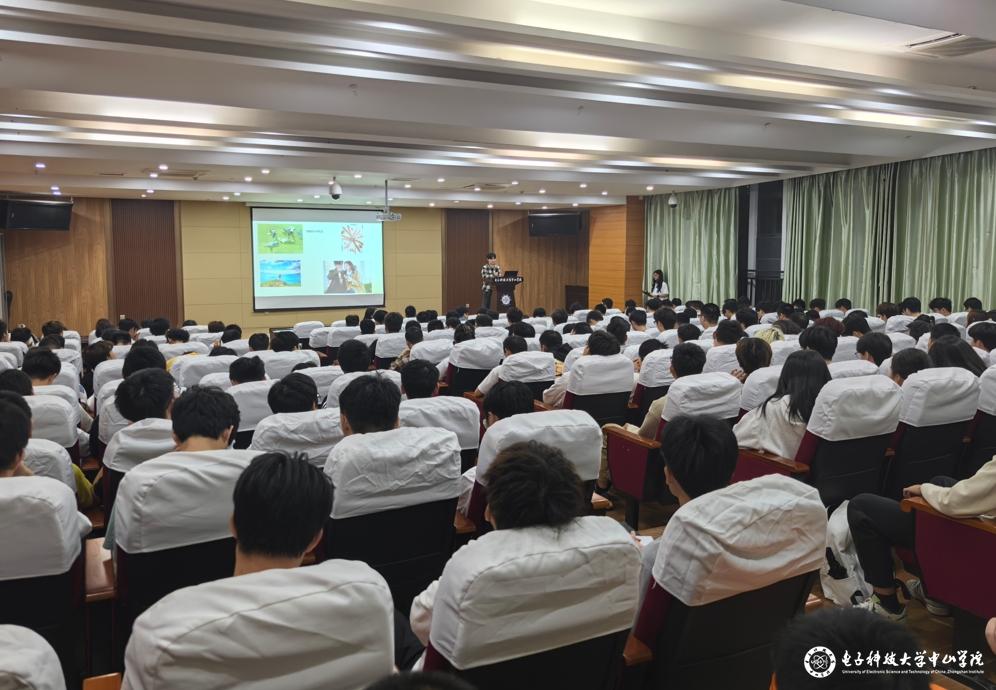 曾晴浩从专业学习、学术研究、校园活动、社会实践和未来规划五个方面展开,讲述了自己踔厉奋进的成长历程。他强调说大学生应该在完成专业课程的学习要求、达到学位英语的授予条件的基础上,沉浸到校内学科竞赛、科研项目等实践活动中进行历练。在谈到科研实践经历时,曾晴浩详细讲述了自己如何从最初的手足无措,到逐步找到方向,再到攻克一个个难关形成丰硕积累的历程,他鼓励同学们突破畏难情绪,勇敢踏入科研实践中历练提升自己的创新能力和问题解决能力。他还帮同学们梳理了可以参加的所有学科竞赛,为同学们踏入科研门槛指明了方向。