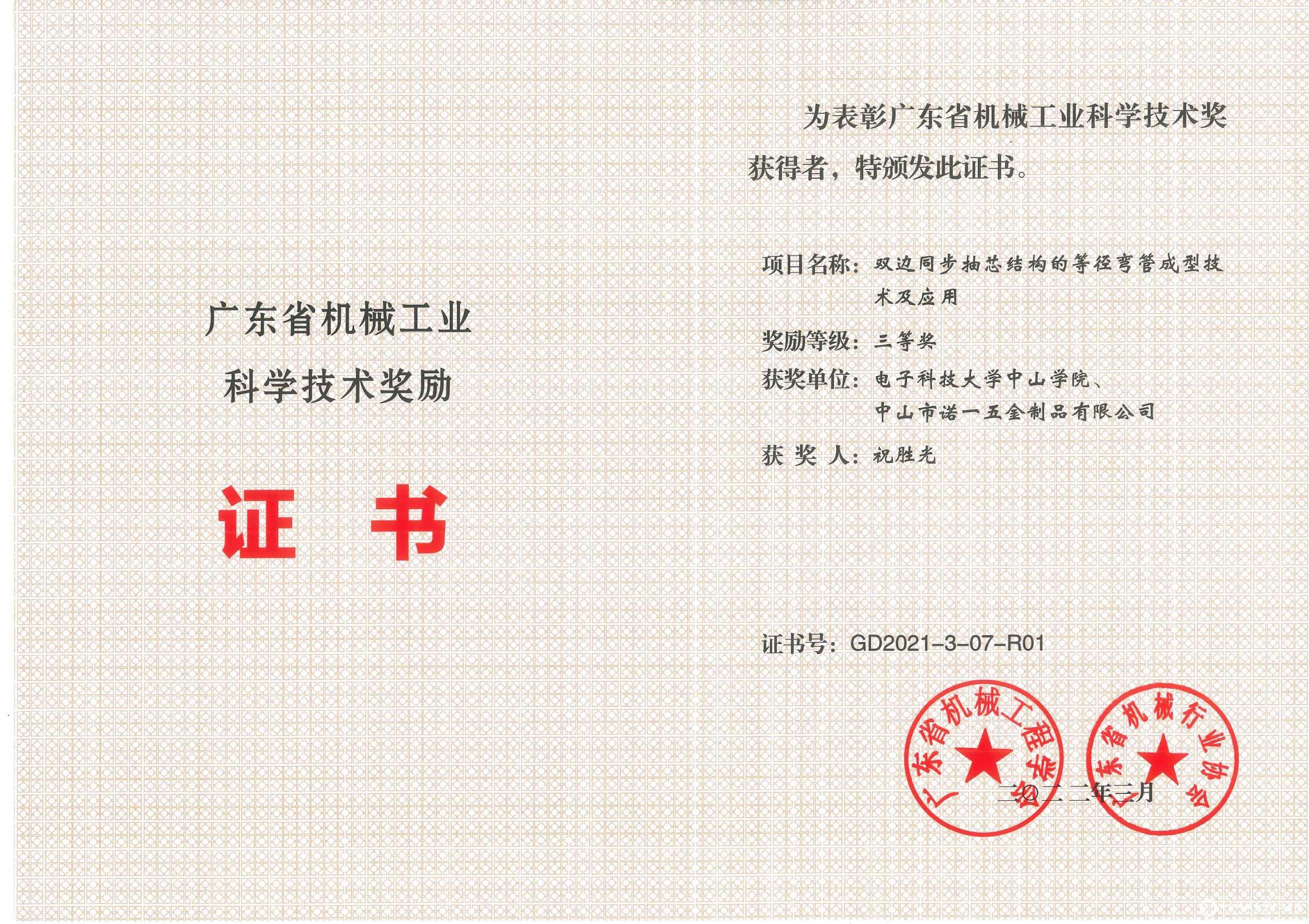 广东省机械工程学院科学技术奖励