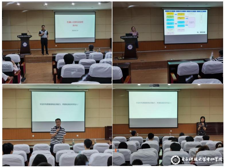 刘保军副院长首先登台做介绍。他强调,该实验班将以培养学生综合创新能力为宗旨,以强化机器人相关数理能力与专业知识为基础,以机器人创新及应用为突破口,强化掌握机器人技术基础理论知识,着重培养具备机器人设计与开发、智能装备设计与控制、系统集成与维护等能力的高素质工程技术人才。随后,彭芳教授讲解了该班级后两年所学习的课程与规划,强调该班级将采用小班化、精英化、导师化的教学方式,并系统地学习机器人学、机器人机构设计、机器人操作系统、机器学习与人工智能等相关课程,引得全场莘莘学子都非常期待。段琢华教授介绍说,通过2年在机器人技术方面的培养,同学们可以大幅提升相关的专业技术能力,他还举例自己课题组内实验班学生所取得的成功案例。最后,欧建韶老师讲解了该班级的申请条件与表格填写要求。